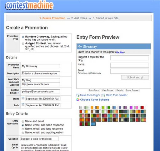 Ce dernier vous propose de concevoir un Widget à poser sur votre blog, avec tout ce qu'il faut pour l'inscription des visiteurs à un jeux concours.