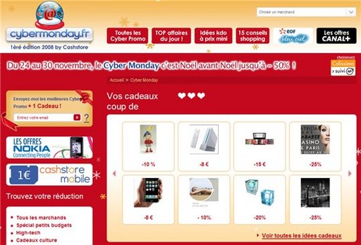 En fait, en vous rendant sur Cybermonday.fr vous trouverez des listing complets de marchands, classés par catégories, offrants des remises exceptionnelles uniquement sur le Web. De quoi faire baisser leur stock pour certains :)