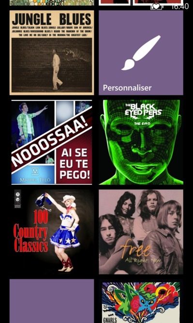 Voici à quoi ressemble "mon windows phone" selon la formule consacrée par Microsoft, une fois la personnalisation finie.