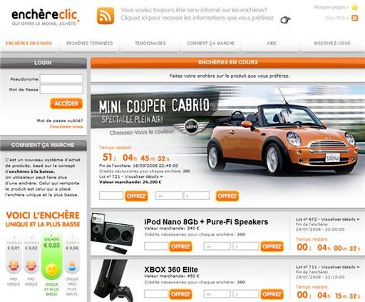 Alors, EnchereClic est un site d'enchères donc, mais le principe du jeu est le suivant : c'est l'enchère unique la plus basse qui remporte.