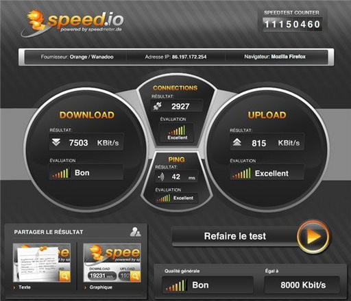 Après avoir testé ma connexion sur Speed.io , je vais arrêter de me plaindre ... pour l'instant.