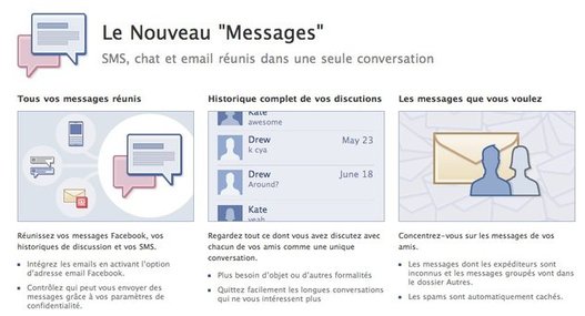 Facebook Messages est ce que l'on appèlera un système de communication unifié, entendez par là qu'il sera possible de répondre aux messages, sms, tchat et mail depuis n'importe quelle application Facebook, comme Facebook mobile par exemple.