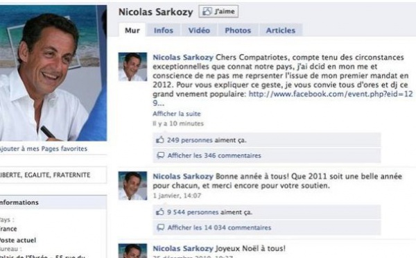 Le compte Facebook de Nicolas Sarkozy a été piraté - 24/01/2011