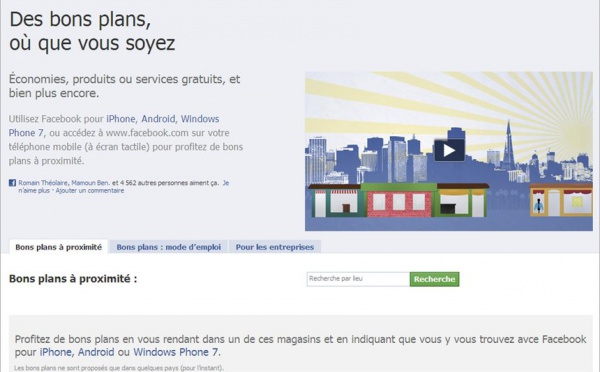 Facebook - 20 millions d'utilisateurs et un nouveau service "Bons Plans" - 01/02/2011