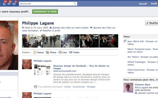Update : Le nouveau profil Facebook est actif Comme dit précédemment, Facebook devrait changer de design dans la nuit de dimanche à lundi et nous en savons un peu plus sur ce nouveau design.Techcrunch vient de publier un article complet sur le sujet, mais voici déjà des screens du nouveau design de Facebook.