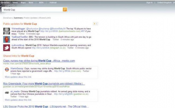 Bing propose Twitter et Facebook dans ses résultats - 10/06/2010