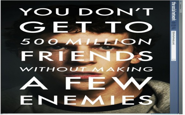 The Social Network, c'est le titre du film sur Facebook qui sortira sur les écran au mois d'Octobre.Le fil rouge de The Social Network est : Tu ne te fais pas 500 millions d'amis sans te faire quelques ennemis "Moi qui ne suit pas un pro Facebook, je ne sais pas si j'irais dans une salle pour voir cela de près, ou alors...