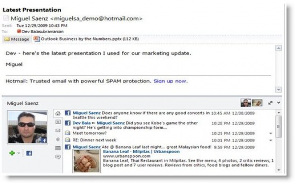 Facebook et Windows Live Messenger se retrouvent dans Outlook - 15/07/2010