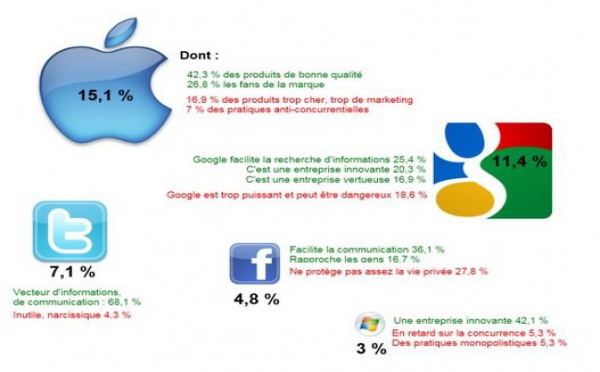 Pensez vous comme la presse US à propos de Facebook, Twitter, Google, Apple et Microsoft ? - 29/09/2010