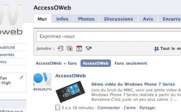 La page Fan d'AccessOWeb sur Facebook - 21/02/2010