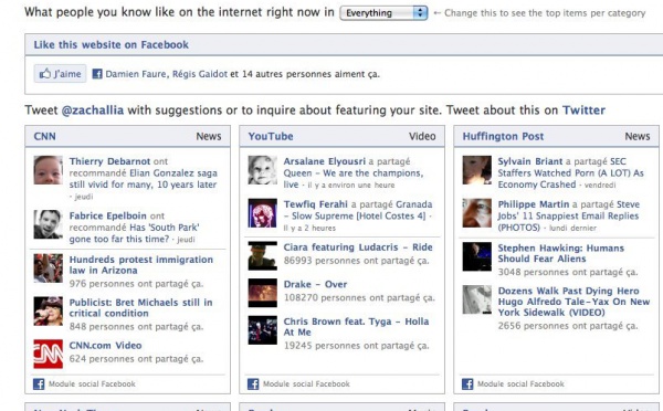 Puisque je disais que l'on pouvait savoir ce que l'on aimait sur Internet via les boutons " j'aime" de Facebook, on peut maintenant le vérifier.En vous rendant sur Like Button, vous pourrez voir une série de widgets représentant chacun un site internet adoptant le bouton " like " et si vous vous identifiez via votre compte...