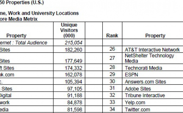 Facebook et Twitter ont tout les deux établi un nouveau record d'audience pour le mois de Juillet selon le site Comscore. Pour ce mois, Facebook s'est classé quatrième site le plus visité au Etats-Unis, juste derrière Google, Yahoo, et Microsoft. Le réseau social fondé par Zuckerberg a atteint le chiffre impressionnant de 162...