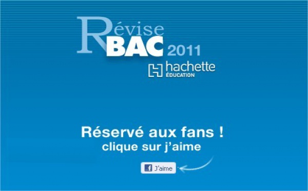 En ces temps de préparation aux examens, les lycéens vont devoir se pencher sérieusement sur leurs cours afin de réussir, on l'espère, leur baccalauréat. Hachette a lancé un concours sur Facebook et permet au étudiants de réviser 3 matières selon des principes de fiches, QCM, cours, etc... mais pour y accéder, il faut être fans...