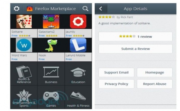 Vous le savez sans doute, Mozilla se prépare à envahir le marché du mobile avec son Firefox OS Mobile qui a d'ailleurs été mis dans les mains des développeurs dans le courant du mois de Juillet. Aujourd'hui, Engadget a mis la main sur les premières images de ce que l'on appelera pour le moment le Firefox OS Store, donc...