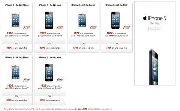 L'iPhone 5 continue d'être proposé par tous les opérateurs, c'est au tour de Free qui propose désormais sur son site, l'iPhone 5 en précommande. Les tarifs sont assez agressifs puisque même nus ils sont inférieurs à ceux pratiqués par Apple. Par contre, l'opérateur ne fait pas mention des délais, il est juste précisé que...