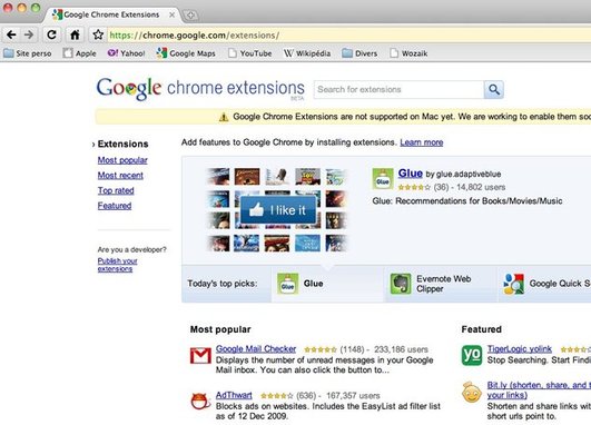 Comme vous devez déjà le savoir tous, Google a mis en ligne il y a quelques jours le site Google Chrome Extensions qui répertorie toutes les extensions pouvant apporter un petit ( ou grand ) plus au navigateur Google Chrome.
