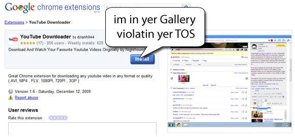 En effet, pendant un petit moment aujourd'hui, les utilisateurs de Google Chrome pouvaient installer et utiliser l'extension Youtube Downloader. ( comme le montre l'image ci dessous prise chez Download Squad )