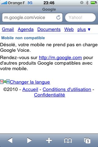 Bon, toujours pareil, pour nous en France, Google Voice sur iPhone, ça donne ça
