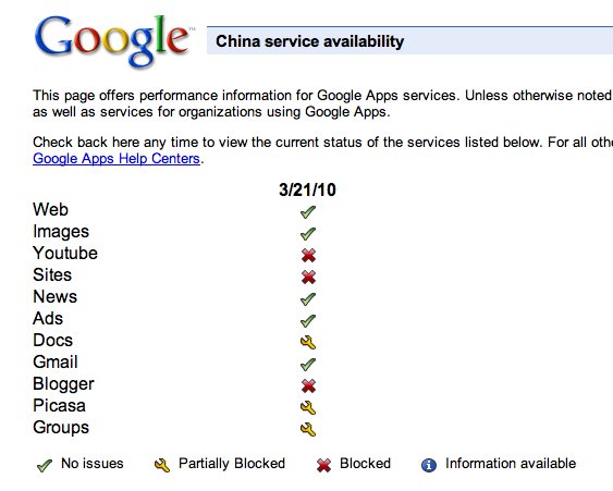 Google a également mis en place un site afin de renseigner les utilisateurs des services disponibles en Chine.