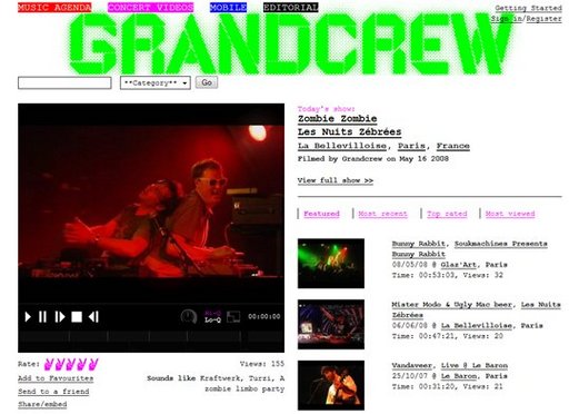 Ayant des accès privilégiés à GrandCrew, j'ai pu tester l'ensemble de la plateforme et y ai découvert des styles musicaux que je n'ai pas l'habitude d'écouter habituellement. Comme dans les sites partages de vidéos que l'on connait, vous pourrez ajouter des vidéos à vos favoris, envoyer un mail à vos amis afin de leur faire découvrir et même partager ces vidéos sur vos sites via le code EMBED.