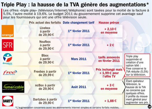 Voici ceux qui ont choisis d'augmenter leurs forfaits à cause de la TVA :