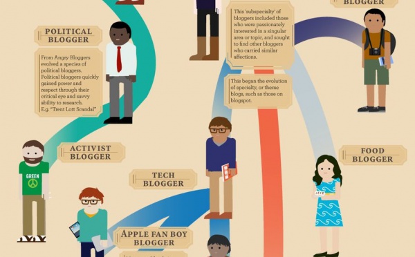 L'histoire des blogs a commencé en 1994 et c'est Justin Hall, un étudiant, qui a démarré. Ensuite est arrivé la période des Web Log pour finalement devenir ce que les blogs sont devenu aujourd'hui.Vous vous reconnaissez dans cette infographie ?source