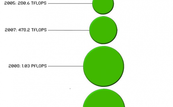 L'auteur de cette infographie, Lukas de Ology.com, nous montre l'évolution des ordinateurs, ou Supercomputing, depuis 1983.Il est parti du fait que la Chine allait battre le record du monde du plus gros ordinateur, avec une machine a faire palir tous les addict aux jeux vidéos :)La surface de chaque cercle représente la...