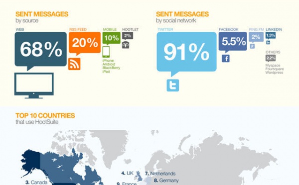 HootSuite fête ses 1 million d'utilisateurs et ceci en 1 infographie qui donne la tendance d'utilisation de HootSuite.Pour ceux qui ne connaisse pas HootSuite, il s'agit d'un service permettant de gérer plusieurs comptes Twitter pour une seule et même entreprise par exemple, mais aussi de gérer des comptes de plusieurs medias...