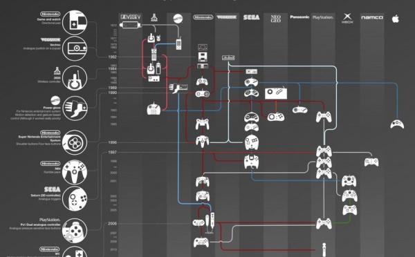 Voilà une infographie qui rappellera de bons souvenirs aux gens de mon âge :)Les manettes de jeux ont sacrément évolué, les jeux aussi bien sûr, mais je suis certain qu'avec les jeux de l'époque certains s'éclatent encore beaucoup ... du moins ceux qui ont conservé soigneusement les consoles, jeux et manettes.Pour voir l'image...
