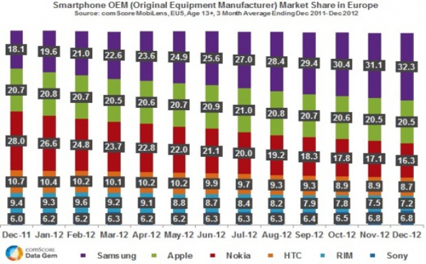 Samsung domine le marché du mobile en Europe - 05/03/2013