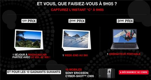 Ci dessus ce sont les lots que propose Instant C905, le site monté de toutes pièces pour le Sony Ericsson C905, dont on pourrait dire que Sony Ericsson a réussi à intégrer un téléphone dans un APN ( 8.1 méga pixels quand même :) )