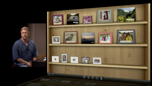 iPhoto se voit greffer une nouvelle interface avec l'intégration de Places en plein écran, Flickr et Facebook sont de la partie pour l'aspect communautaire du logiciel.