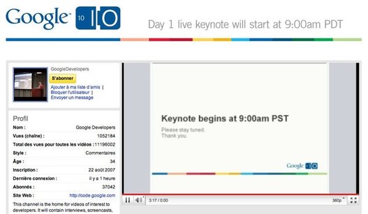 La conférence Google I/O se tient à San Francisco les 19 et 20 mai 2010 et il y aura 2 Keynotes en Live.