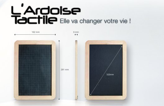 Voilà un buzz qui est vraiment très sympa, l'Ardoise Tactile, toutes les caractéristiques, un déballage dans les règles de l'art et une démonstration à faire palir les constructeurs de tablettes tactiles.