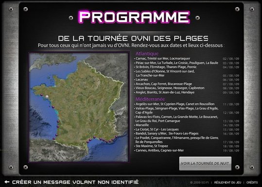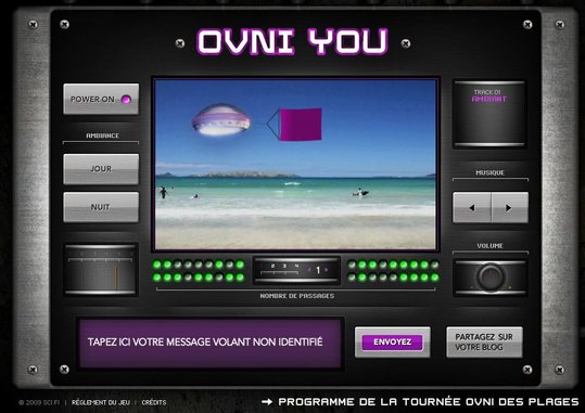 A cela, vous ajoutez un concours qui permettra de gagner un voyage aux Antilles et des abonnements à Canal Sat. Pour cela, vous devez vous rendre sur le site de Sci Fi, écrire un message que vous verrez apparaître sur la banderole de l'OVNI, régler la musique, etc ... et l'envoyer à tous vos amis.