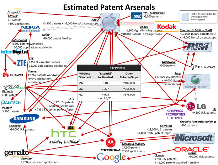Ci-dessous, vous en trouverez une autre infographie donnant une estimation du nombre de brevets que chacun possède.