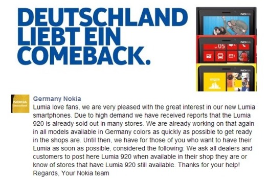 Le Lumia 920, le dernier fleuron de Nokia qui tourne sous Windows Phone 8, a visiblement fait très bonne impression chez nos amis allemands puisque les magasins ont été vidés de leurs stocks en quelques jours.