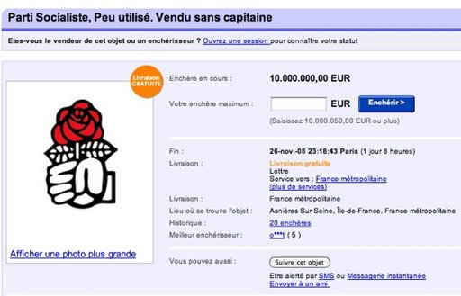 Le Parti Socialiste en vente sur eBay ?Publié par Philippe . le Mardi 25 Novembre 2008
