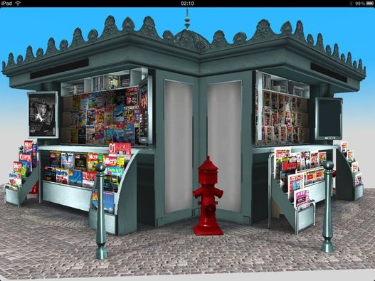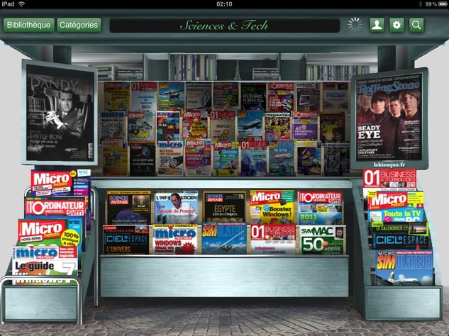 LeKiosque.fr c'est donc un site vous permettant d'acheter des revus, quotidiens, etc... et les lire sur votre ordinateur tranquillement. Il arrive maintenant sur l'iPad avec sa magnifique interface qui vous offre le visuel d'un vrai kiosque à journaux sur lequel vous trouverez différents choix classés par catégories.