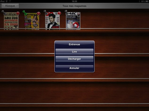 Ce qui est important et nouveau avec LeKiosque, c'est que vous pouvez " décharger " des magazines lorsque vous en avez un peu trop en stock sur l'iPad, sans pour autant les perdre de vue sur vote bibliothèque.