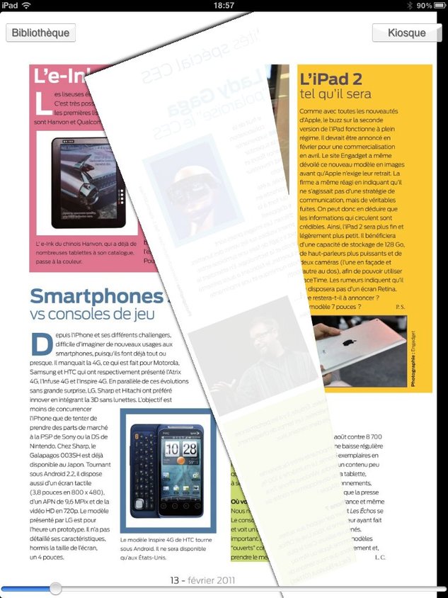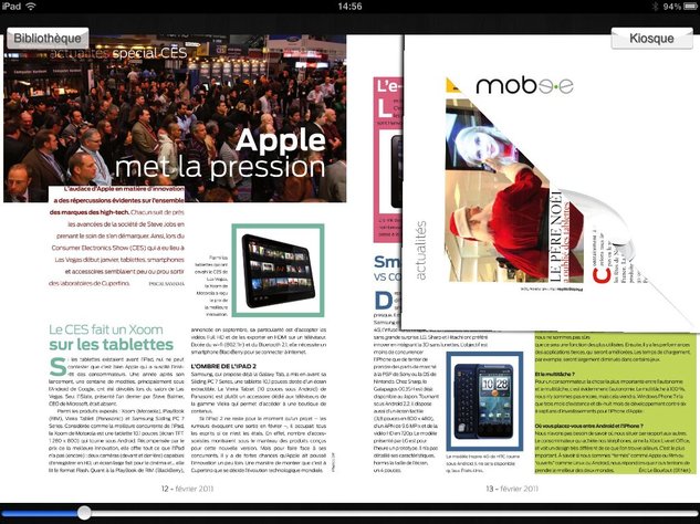 Ensuite, en ce qui concerne la lecture, comme pour d'autres, vous pourrez effeuiller votre magazine que ce soit en mode portrait ou paysage sur l'iPad