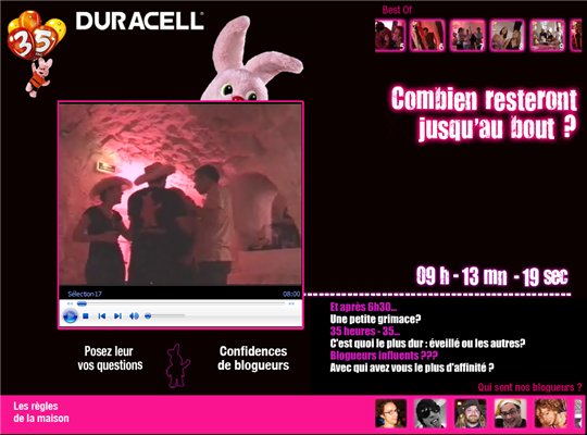Vous n'êtes pas sans savoir que ce Week end, durant 35 heures, 35 blogueurs français se sont retrouvés dans un " loft ", enfermés pour fêter les 35 ans de Duracell ( il reste 9h à tenir à l'heure ou j'écris ce billet ).