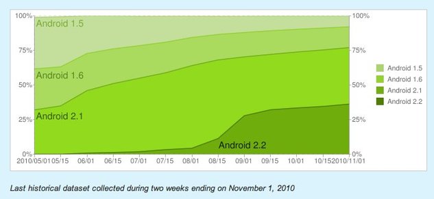 Pour le reste, comme vous pouvez le voir, ce sont les versions 2.1 et 2.2 d'Android qui dominent le marché.