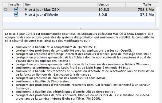 Mon Mac vient de me sonner pour la mise à jour de Mac OS X version 10.6.3, et vue le nombre de corrections, je vais le lancer immédiatement même si pour un certains nombre, il n'y a rien de vital.