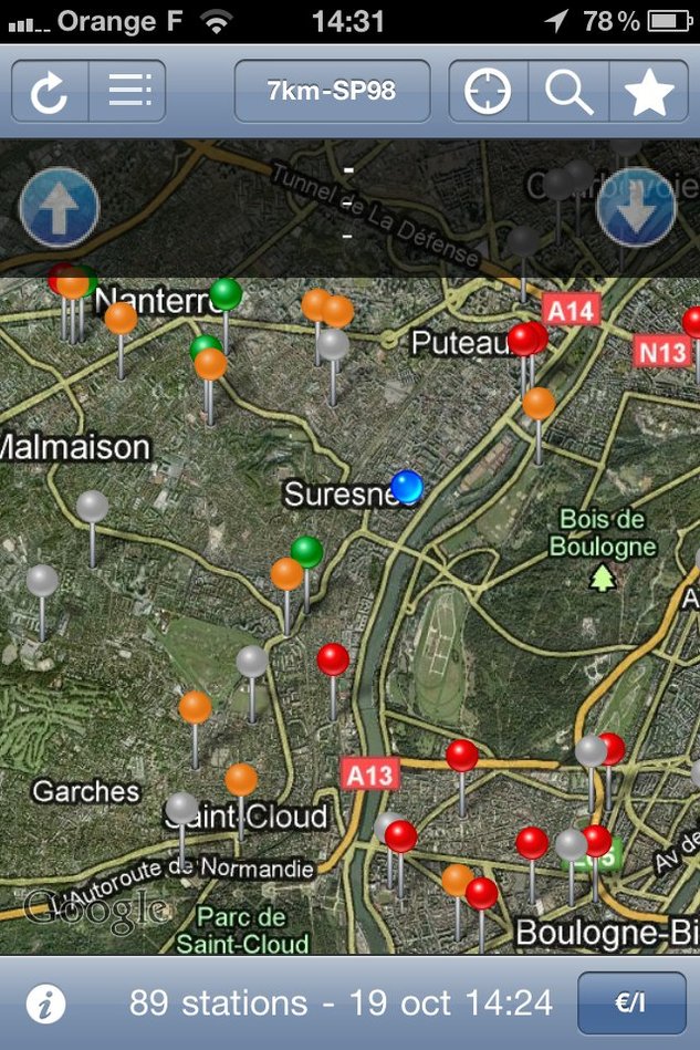Avec cette pénurie de carburant il est difficile de connaitre les stations qui sont à sec, nous avons vu le site carbeo.com qui permet de localiser et de signaler les stations qui sont affectées par ces problèmes de ravitaillement et le forum d'auto-moto. Je vous présente l'application Mobicarbu+ sur iPhone qui permet de connaitre le prix du carburant dans les stations services à proximité mais le plus interessant c'est que sa base de données est reliées à celle de carbeo.com, l'application est donc en mesure d'indiquer les stations fermées en inquant à la place du prix un "-". Le prix du carburant est classé par un code couleur suivant son prix plus ou moins élevé.