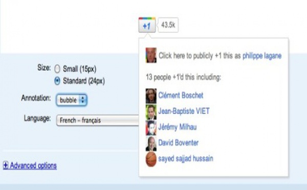 Google Plus continue son bonhomme de chemin et aujourd'hui Google propose une petite amélioration du bouton +1 qui a fleuri sur des millions de sites à travers le monde. Vous allez avoir la possibilité d'afficher les photos de vos amis Google + qui ont cliqué sur le bouton. Cet affichage peut se faire de 2 manières...