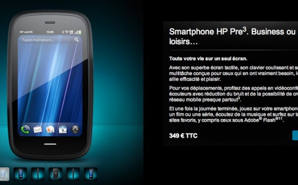 Le HP Pre 3, dernier né de la gamme anciennement Palm Pre, est maintenant en vente en France sur le site de HP France. Son prix est de 349 € nu, mais le délai de livraison, même si les frais de livraison sont gratuit, est de 3 à 4 semaines. Dans le même temps, et visiblement en avant première en France, la tablette HP, le...