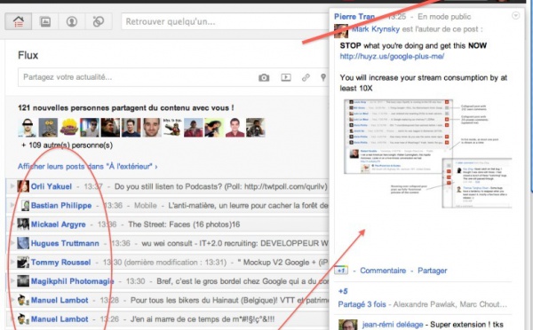 Pour ceux qui utilisent énormément Google + et qui suivent beaucoup de monde, ce qui est mon cas, il y a une extension quasi indispensable à installer sur Google Chrome. Cette extension, G+me, permet d'un clic de souris de fermer toutes les discussions, ce qui permet d'en voir plus à l'écran, et d'un simple passage de souris,...