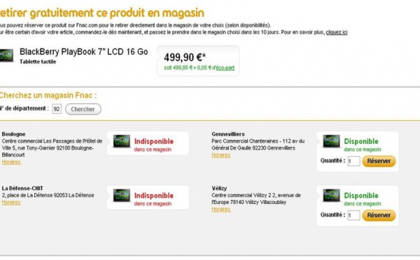 La Playbook est disponible depuis une semaine déjà et la Fnac la propose dès maintenant au prix de 499.90€ pour la version 16Go, 599.90€ pour la 32Go et 699.90€ pour la 64Go. Pour les personnes frileuses de commander sur internet ou très pressé d'avoir le joujou entre les mains, elles vont pouvoir se rendre dans les Fnac pour...