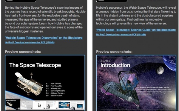 La NASA vient de mettre en libre service 2 ebooks sur le télescope Hubble et sur son successeur. Les ebooks proposent des fonctiones interactives qui permettent de voir une collision de galaxis, et également de manipuler le télescope. Hubble a été lancé en 1990 et sa mission devrait s'arrêter en 2013. On pourra ainsi voir de...